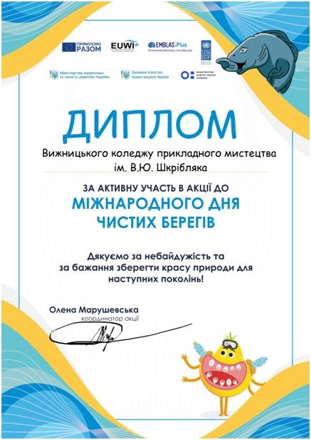 Студенти першого курсу спеціалізацій «Дизайн середовища», «Графічний дизайн» та «Живопис і графіка» були одними із перших, хто долучився до цієї акції, що проводилась за підтримки Європейського Союзу та Програми розвитку ООН. Діти прибирали сміття на березі річки Черемош.